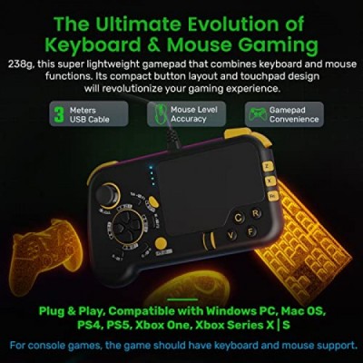 IFYOO GTP01 Wired USB Gaming Touchpad with Keyboard and Mouse Funcitons, Trackpad Game Controller Compatible with Xbox Series X|S, Xbox One, PS5, PS4, PC Steam Windows 11 10, Mac OS - Black&Yellow