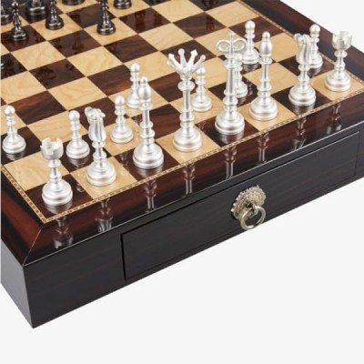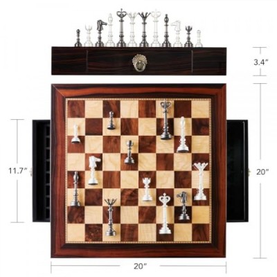 AMEROUS 20 Inches Wooden Chess Set with Metal Chess Pieces- 4.5'' King - 2 Built-in Storage Drawers - Gift Packaging,Tournament Chess Board Games for Adults and Kids