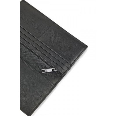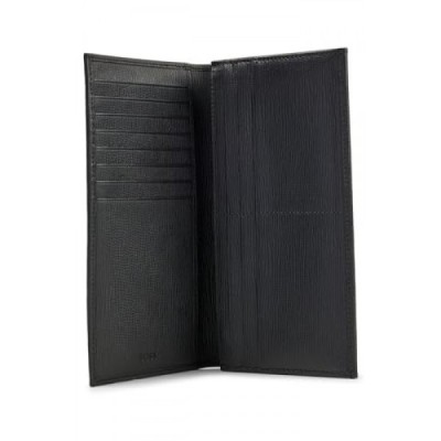 Boss Men's GalleryA Wallet Long Oblong Wallet Made of Embossed Leather with Logo Appliqué Black, Black 1