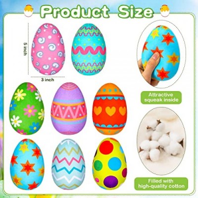 개를위한 Threan 8 Pcs 부활절 장난감 부활절 달걀 끽끽 거리는 봉제 부활절 달걀과 개 장난감 개 삐걱 거리는 장난감 중소형 개를위한 봉제 인형 부활절 선물 강아