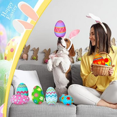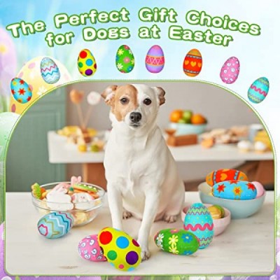 Threan 8 Pcs Easter Toys for Dogs Easter Egg Dog Toy with Squeaker Plush Easter Eggs Dog Squeaky Toy Stuffed Dog Plush Toy Easter Gift for Medium Small Dogs Puppy Interactive Durable Dog Toys