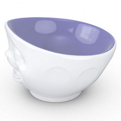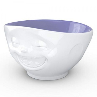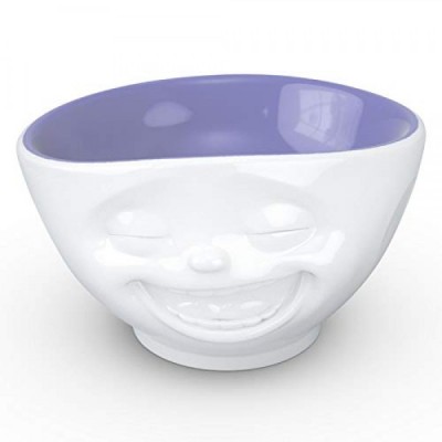 FIFTYEIGHT PRODUCTS TASSEN Porcelain Bowl, Laughing Face Edition, 16 oz. White Outside, Lavender Color Inside (Single Bowl)