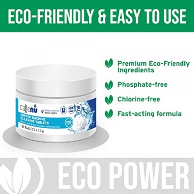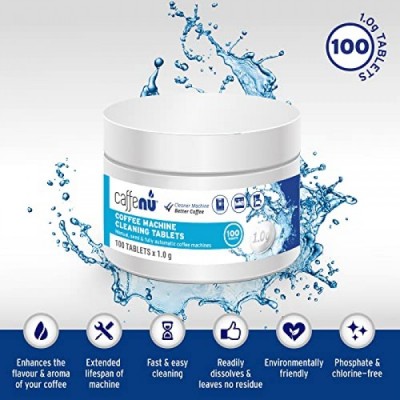 Caffenu | Coffee Machine Cleaner Tablets | 100 x 0.03 oz Tablets | Coffee Machine Cleaning tablets used every 100 cups | Auto, Filter & Espresso Machine Cleaning Tablets | used with Descaling
