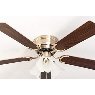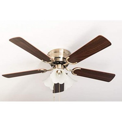 Pepeo - Kisa 천장형 선풍기(조명 포함) | 로즈와 호두나무 소재의 양면 블레이드가 있는 황동 풀 스위치가 있는 팬, 직경 105cm. (색상: 브라스, 로즈우드/월넛)