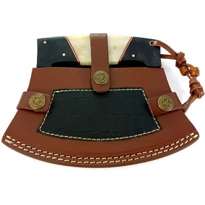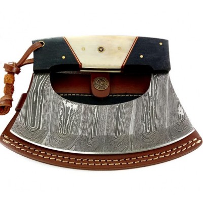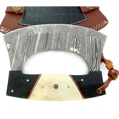 Damascus Steel alaskan Ulu Knife - Fixed Blade knife for Chopping Boning Slicing Cutting with Leather Sheath. SM149
