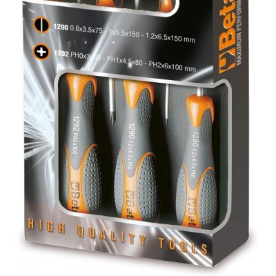 Beta 1293/D8 Schraubendrehersatz, Schraubenzieher Set, (Werkzeugset 8-teilig, mit Grip, 5 Schlitz-und 3 Kreuzschlitz, höchst widerstandsfähiges Werkzeug, Gewicht: 728 g), Grau/Orange