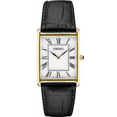 SEIKO Square Gold Black Leather mens Watch SWR052