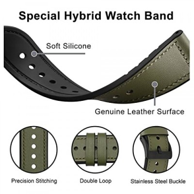 Anbeer 20mm 22mm Watch Band for Men and Women,Genuine Leather Hybrid Silicone Replacement Watch Strap with Stainless Buckle
