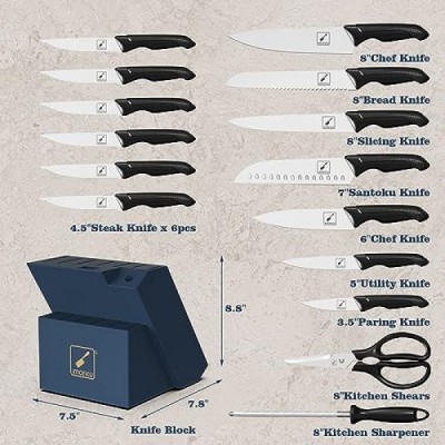 imarku 칼 세트, 블록이 포함된 식기세척기 안전 주방 칼 세트, 16개 스테인레스 스틸 요리사 칼 세트, 주방용 날카로운 칼 세트, 인체 공학적 손잡이가 있는 칼 블록 세