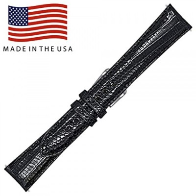 Made in USA - Genuine Lizard Watch Strap Band in SHORT, REGULAR or LONG Length Sizes with Gold and Silver Buckle Included - Factory Direct 16mm 17mm 18mm 19mm 20mm 22mm 24mm