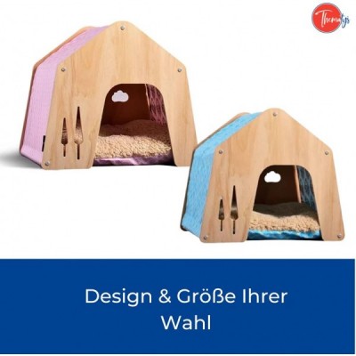 thematys Hundehütte Schlafplatz für Haustiere Robustes Hundehaus mit Stoffdach aus Holz (M (45 x 50 cm), Style 1) M (45 x 50 cm) Style 1