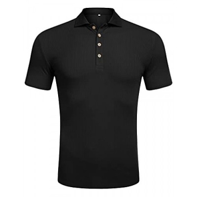 URRU Men's Muscle T Shirts Stretch Long&Short Sleeve Workout Tee Casual Slim Fit Polo Shirt