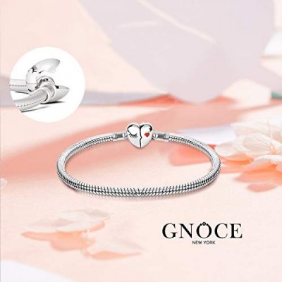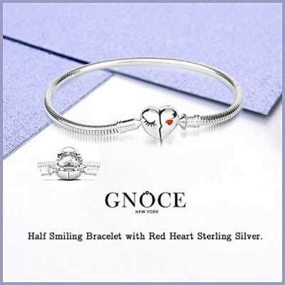 Gnoce 스털링 실버 팔찌 "Love Your Smile" 남성과 여성을 위한 하트 걸쇠가 있는 스네이크 체인 참 팔찌