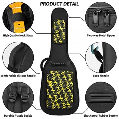 39 Inch Electric Guitar Bag Case 0.38 inch Thick Padding with Neck Strap Adjustable Shoulder Strap Waterproof Yellow Lightning Shape&Black Electric Guitar Gig Bag