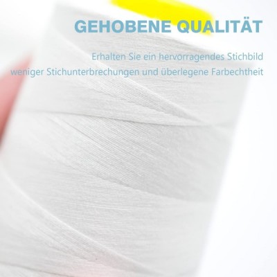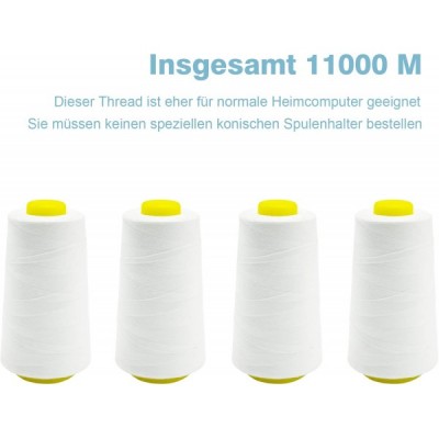 NäHgarn Overlockgarn 100% Polyester Weiß NäHgarn Set FüR NäHgarn Faden Garn NäHmaschine 4 NäHgarn Zwirn ReißFest NäHmaschinengarn Thread NäHfaden Overlock Garn 40/2 Je 2745 M, Insgesamt 11000m