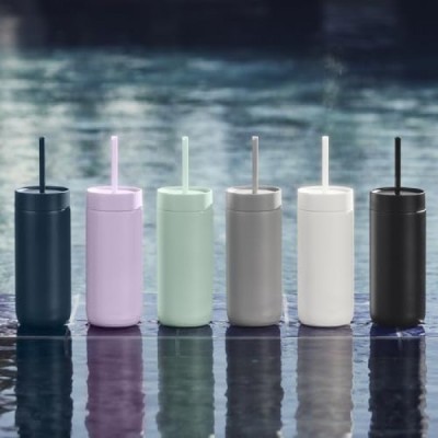 Fellow 물, 아이스티, 커피, 스무디, 아이스 커피 등을 위한 20온스 카터 콜드 여행용 머그 - 유출 방지 뚜껑과 빨대가 포함된 스테인레스 스틸 진공 단열 아이스 커피 텀