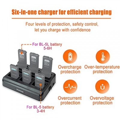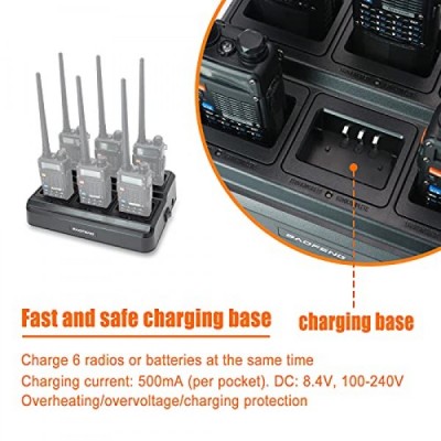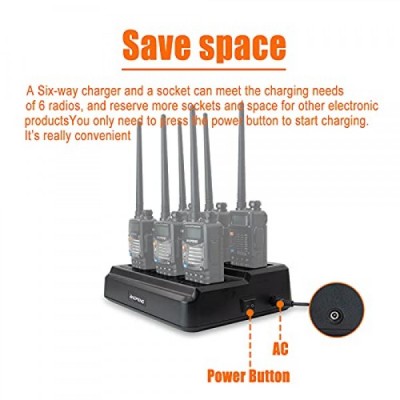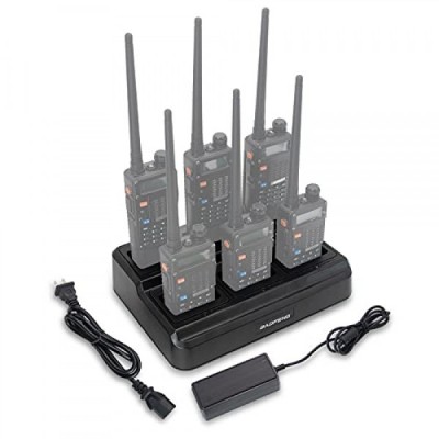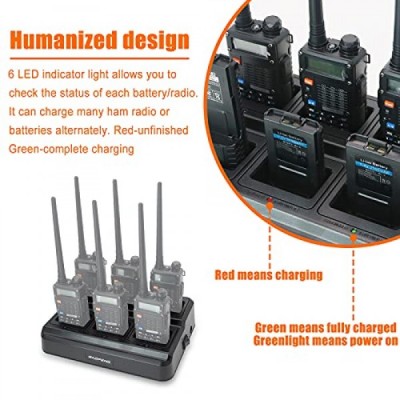 BAOFENG UV-5R Six-Way Charger Multi-Unit Charger Station for BF-F8HP UV-5R UV-5RE UV-5RPRO UV-5RM Retevis RT-5R RT-5RV Mirkit UV-5R MK4 Walkie Talkie and Battery(1Pack)