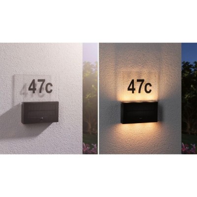 Paulmann Neda 94725 LED Solar House Number Light Motion Sensor Insect Friendly IP44 2200K 30lm Anthracite Gold Light Plastic