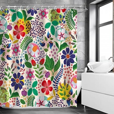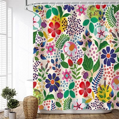 LIVILAN Floral Shower Curtain Colorful Shower Curtain Flower Boho Bright Unique Flowered Fabric Bohemian Shower Curtain for Bathroom with 12 Hooks, 72"x 72"