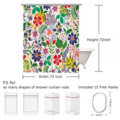 LIVILAN 꽃 샤워 커튼 다채로운 샤워 커튼 꽃 Boho 밝은 독특한 꽃 패브릭 보헤미안 샤워 커튼 욕실 12 후크, 72 "x 72"