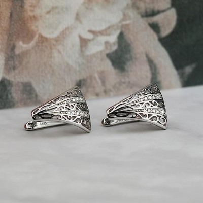 SOFIA MILANI - 여성용 귀걸이 925 실버 지르코니아석 - 곡선 사다리꼴 스터드 귀걸이