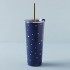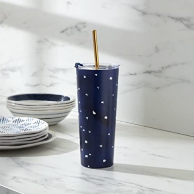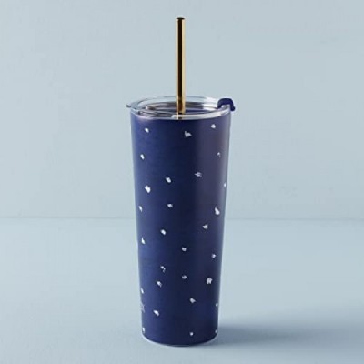 Lenox 895728 Blue Bay Dot Pattern Stainless Steel Tumbler With Straw