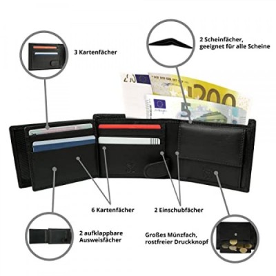 MOKIES 남성용 지갑 - 프리미엄 가죽 - 100% 나파 가죽 - RFID 및 NFC 보호 - 남성용 지갑, 블랙(Gn102m), 클래식