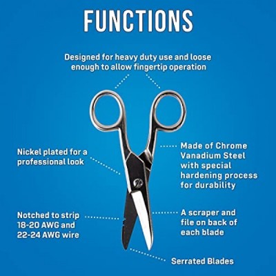 Jonard Tools ES-1964 Stainless Steel Electrician Scissors, for Heavy Duty Use