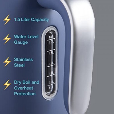 Rae Dunn 전기 물 주전자 - 스테인리스 스틸 커피 메이커, 1.7리터 차 주전자, 자동 종료 종기 건조 보호 기능이 있는 전기 온수 주전자, 1500와트 끓는점(네이비)
