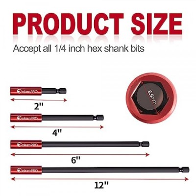 4PCS Strong Magnetic Drill Bit Extension Holder for Impact Driver,1/4 Hex Shank S2 Steel Magnetic Screwdriver Extension,Drill Bit Extender,2,4,6,12-inch Extensions