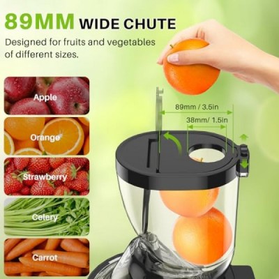 Cold Press Juicer Machines, 300W Slow Masticating Juicer Machines with 3.5inch (89mm) Large Feed Chute, Slow Cold Press Juicer Machines Vegetable and Fruit, Reverse Function Easy to Clean with Brush