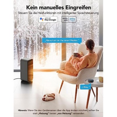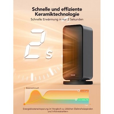 GoveeLife Fan Heater, Thermostat Heater, Intelligent Electric Heater, WiFi and Bluetooth App, Works with Alexa and Google Assistant, 1500 W Ceramic Fan Heater for Room, Black