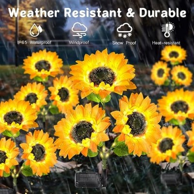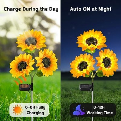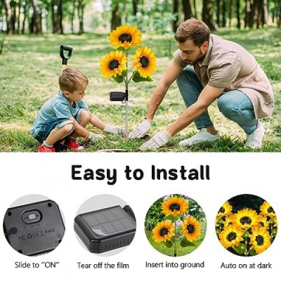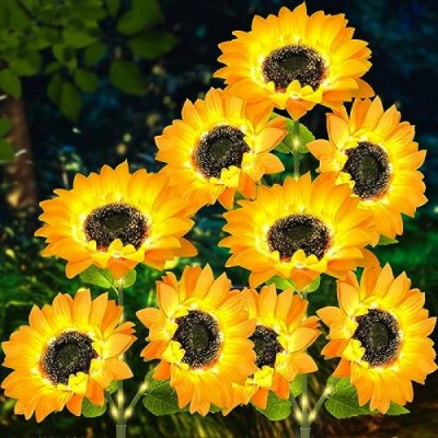 BesLowe 3 팩 9 해바라기 태양광 조명 야외 방수, 태양광 정원 조명 정원 장식, 파티오 마당 화단 뒷마당 장식을 위한 태양광 발전 꽃 조명 장식