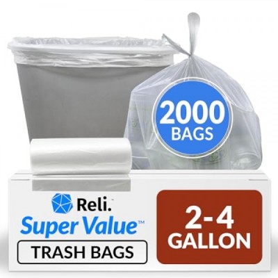 Reli. SuperValue 2-4 Gallon Trash Bags | 2000 Count Bulk | Small | Clear Multi-Use Garbage Bags