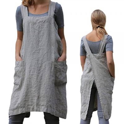 ZQFFB Pinafore Cross Back Apron for Women with Pockets Japanese Smock for Work Gardening Cooking Painting Baking