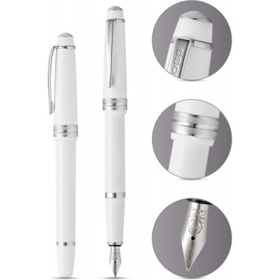 Cross Bailey Light 만년필 (닙 크기 F, 선물 상자 포함) 화이트 화이트 파인