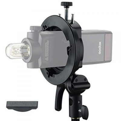 Godox S2 Speedlite S 형 브래킷 Bowens 마운트, Godox V1 AD200Pro AD400Pro AD200 V860II TT685 TT600 TT350, 정밀한 기울기 제어, 대형 조정 핸들, 통합 우산 마운트, 더 컴팩트