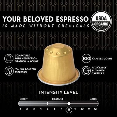 ESPRESSORO 20 USDA Organic Espresso Pods - DOLCE Aluminum Capsule Compatible with Nespresso Original Lines Machines. Intensity 8 Premium Italian Expresso Coffee Capsules