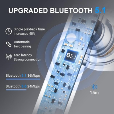 - 【Bluetooth 5.1】: Der kabellose Kopfhörer verwendet Bluetooth 5.1, mit hervorragende Kompatibilität und Stabilität . Sie können eine schnellere Verbindungsgeschwindigkeit (nur 2 Sekunden) genießen, klarere Musik genießen und reibungslosere Anrufe erleben.