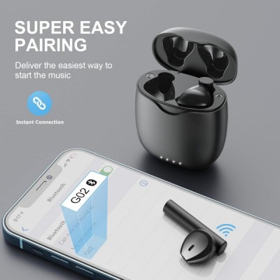 kauguo Bluetooth Kopfhörer, Kopfhörer Kabellos in Ear mit Mikrofon, Bluetooth 5.1 in Ear Kopfhörer, Auto Pairing HiFi Stereo 30 std Spielzeit,Touch Control Kopfhörer für iPhone Android Samsung Huawei Schwarz