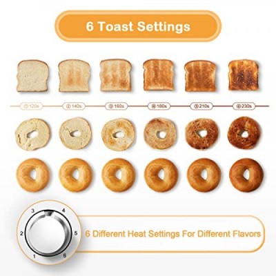 Mecity 4슬라이스 토스터, 스테인리스 스틸 4슬롯 토스터(예열 랙 포함), 터치 시 시원함, 베이글/해동/재가열 기능 탈착식 트레이, 브라우닝 설정 6개, 매우 넓은 슬롯,