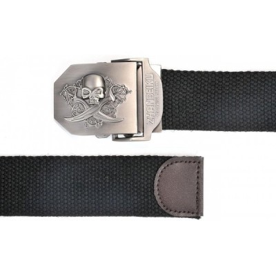 FALETO Herren Militär Gürtel Stoffgürtel mit Schädel Totenkopf Schnalle Leinwand Canvas Jeansgürtel Belts 140cm + Original Geschenkbox 140cm Fit Taillen 115-122cm Schwarz