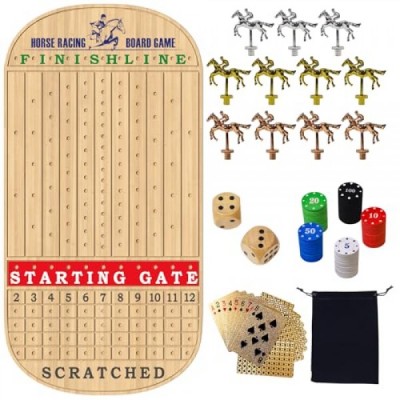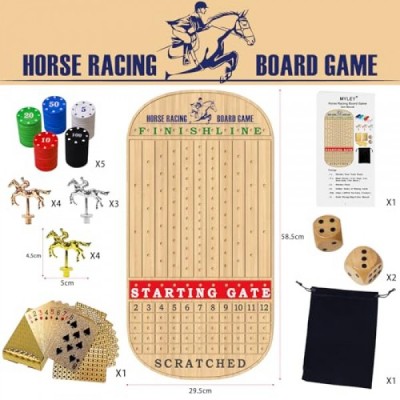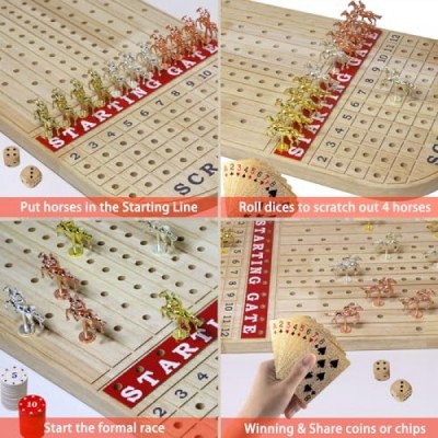 Horse Race Board Game, Wooden Horse Racing Board Game 23IN for Adults with Horse Game Board, 11 Metal Horses, 2 Wooden Dice, 2 Decks of Golden Cards and 100PCS Chips