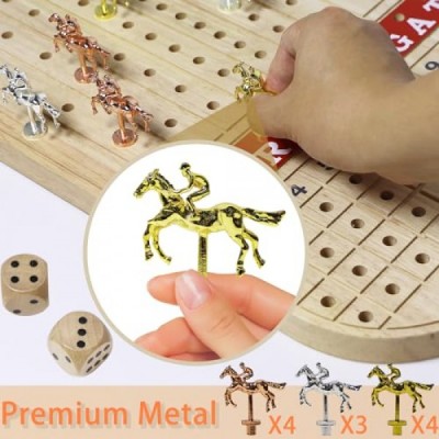 경마 보드 게임, 말 게임 보드, 11개의 금속 말, 2개의 나무 주사위, 2개의 황금 카드 데크 및 100PCS 칩이 포함된 성인용 목제 경마 보드 게임 23IN