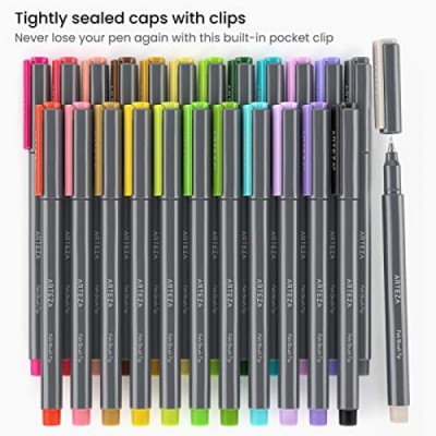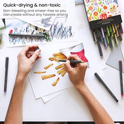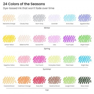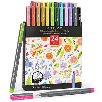 ARTEZA 펠트 펜, 메모 작성, 스케치, 크로스 해칭, 아웃라인, 염료 기반 잉크, 얼룩 방지를 위한 계절별 브러시 팁 캘리그래피 펜 24개 세트