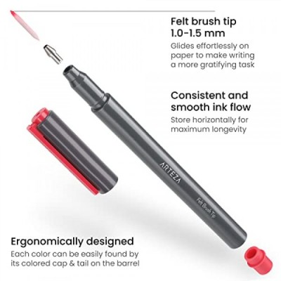 ARTEZA Felt Tip Pens, Set of 24 Seasonal Brush Tip Calligraphy Pens for Note Taking, Sketching, Cross-Hatching, Outlining, Dye-Based Ink, Smear-Free