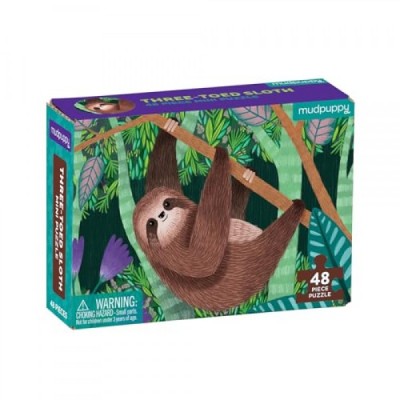 Mudpuppy Three-Toed Sloth Mini Puzzle, 48 Pieces, 8” x 5.75” – Perfect Family Puzzle for Ages 4+ – Jigsaw Puzzle Featuring a Colorful Illustration of a Sloth, Informational Insert Included
