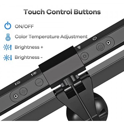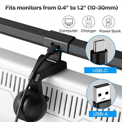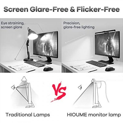 HIOUME 모니터 라이트 바, 책상/사무실/가정용 USB 전원 LED 컴퓨터 조명, 3가지 색온도 조절 가능, 10단계 밝기 조절, 화면 눈부심 없음, 검정색