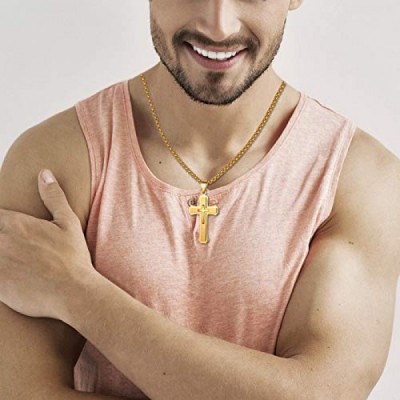 JewelryWe 남성용 목걸이, 스테인레스 스틸 클래식 크로스 펜던트, 22인치 체인, 실버/골드/블랙, 무료 각인, 스테인레스 스틸
