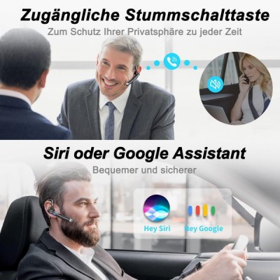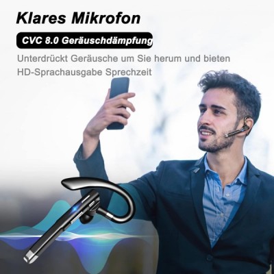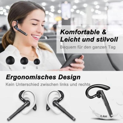 Kinganda Bluetooth Headset V5.1 Wireless Headset Bluetooth Freisprechen im Ohr mit CVC8.0 Rauschunterdrückung Mikrofon für Business/Büro/Fahren, Kompatibel mit iPhone und Android yyk520-1-S